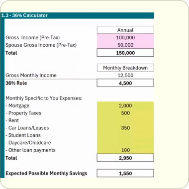 These aren't generic spreadsheets. Input YOUR income, YOUR expenses, YOUR goals and see YOUR plan come to life. Lifestyle expenses, savings rate, income growth, and more.